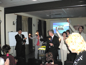 Право поделить праздничный торт предоставлено Президенту КСО Глебу Бахареву и Советнику КСО по Сибирскому региону Елене Леонидовой
